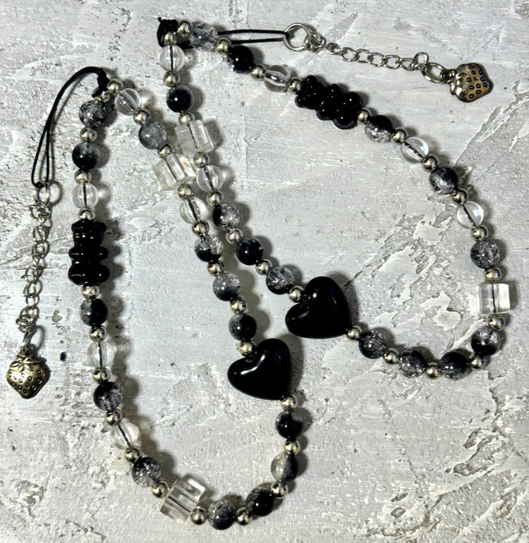 بند آویز موبایل طرح مروارید قلبی سیاه