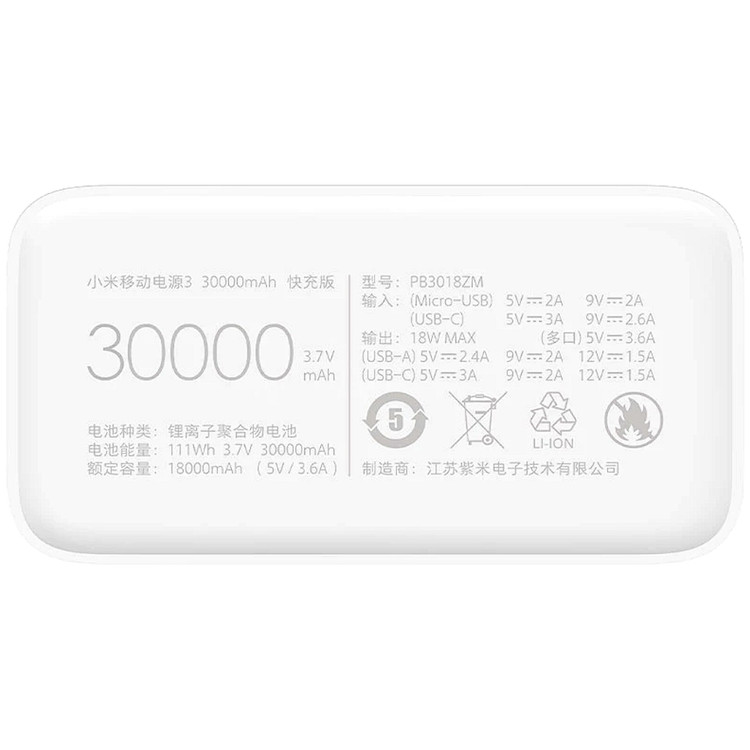 ویژگیها و کاربردهای پاوربانک 30000 شیائومی مدل PB3018ZM