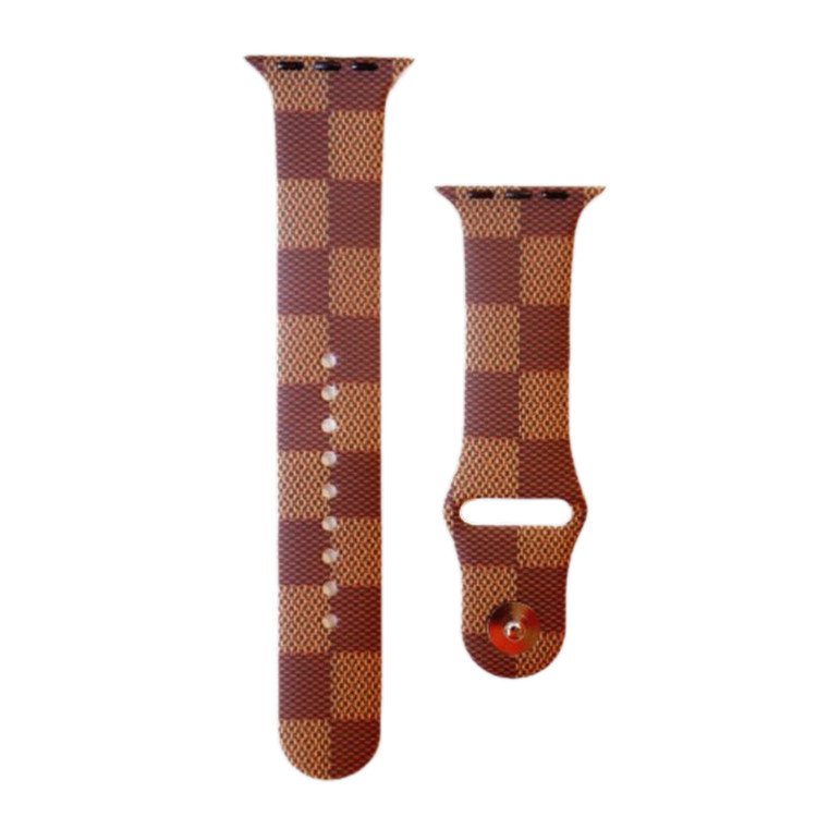 بند اپل واچ چرم طرح چارخونه قهوه ای